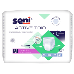 Le sous-vêtement absorbant jetable offre une solution pratique pour les personnes actives qui apprécient la discrétion et le confort. Elle est élastique et se porte comme un sous-vêtement ordinaire. Contrôle des odeurs : des granulés spéciaux super absorbants empêchent les odeurs désagréables d’apparaître. Sensation de garde au sec : l' Extra Dry System répartit l’humidité dans le coussin absorbant. Protection supplémentaire : les barrières le long du coussin absorbant empêchent les fuites latérales. Facilité d’utilisation : impression FRONT sur le devant pour faciliter la pose du produit et une languette de fermeture à l’arrière pour jeter le produit de manière discrète et hygiénique, coutures latérales déchirables. Agréable pour la peau : elle permet à la peau de respirer.
