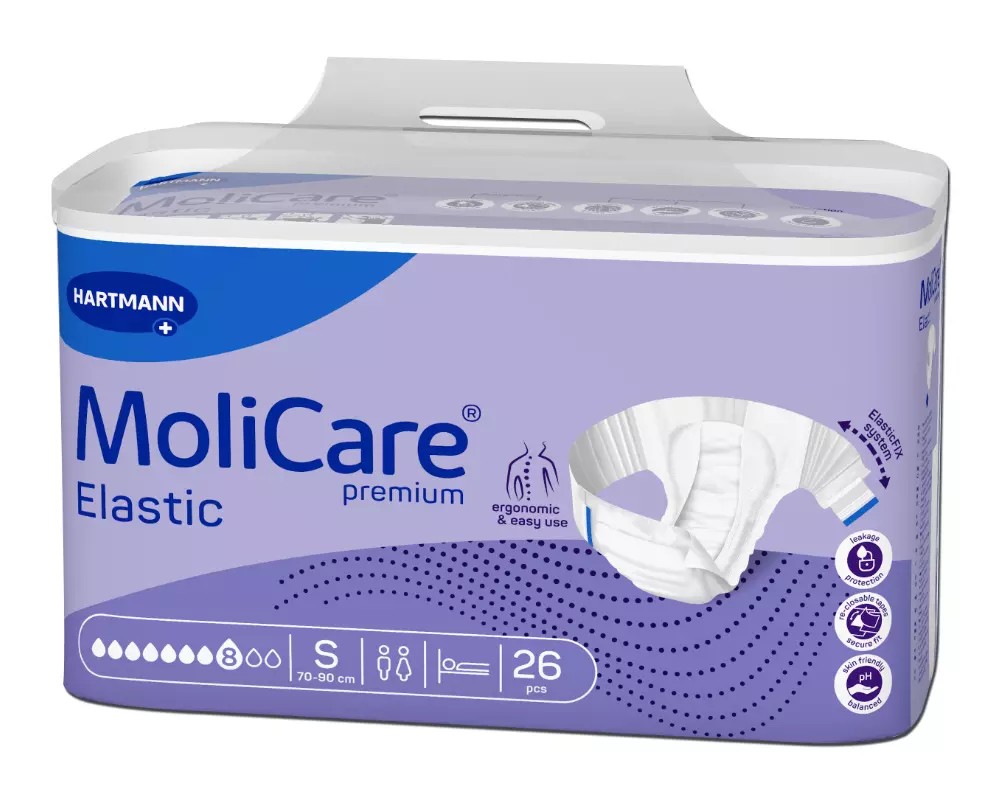 Les changes complets Hartmann Molicare Premium Elastic 8 Gouttes sont indiqués en cas d’incontinence (urinaire/fécale) forte. Ils apportent une protection sûre la nuit mais s’utilisent également en journée si votre cas nécessite une protection renforcée. Possédant un matelas à triple épaisseur doté d’une haute capacité de dispersion et de rétention, ils garantissent un effet garde au sec optimal. Votre sécurité est par ailleurs renforcée par les barrières anti-fuites étanches. La marque a conçu ces protections avec de larges ailes élastifiées et des adhésifs multi repositionnables pour faciliter la mise en place, l’ajustement et le retrait. Ces changes complets sont très agréables au contact de la peau grâce à son fil doux et aéré écartant ainsi les risques d’irritation.